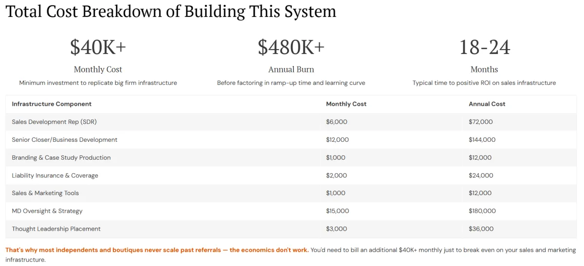 Membership with VAI Consulting delivers exceptional value. Compare our complete solution to the true costs of building out just some of our capabilities independently